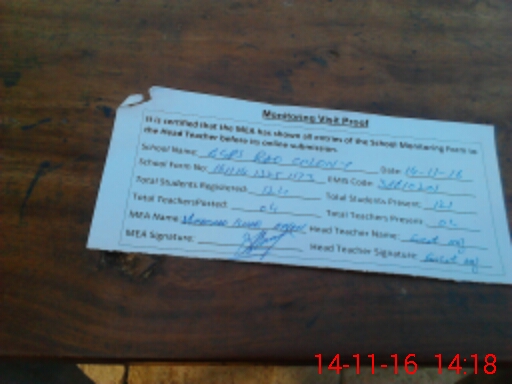 | Attendance Register | Head Teacher | MEA with School | Visit Proof |