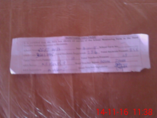 | Attendance Register | Head Teacher | MEA with School | Visit Proof |