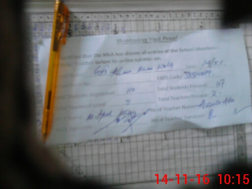 | Attendance Register | Head Teacher | MEA with School | Visit Proof |