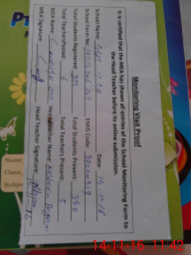 | Attendance Register | Head Teacher | MEA with School | Visit Proof |