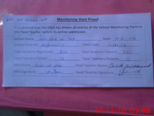 | Certified that this School was Inspected by the Undersigned MEA/DMO Today and the Information Stated Above is as Per Record. | |||||