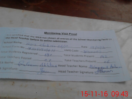 | Attendance Register | Head Teacher | MEA with School | Visit Proof |