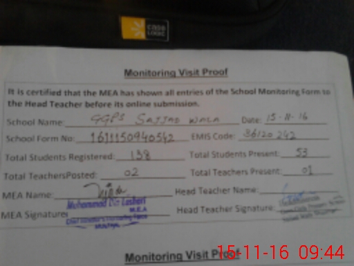 | EMIS Code: 36120242 | Name of School: GGPS SAJAD WALA SHUJABAD DISTT. MULTAN | |||