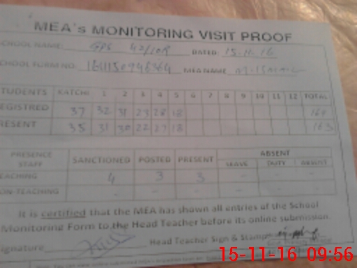 | Attendance Register | Head Teacher | MEA with School | Visit Proof |