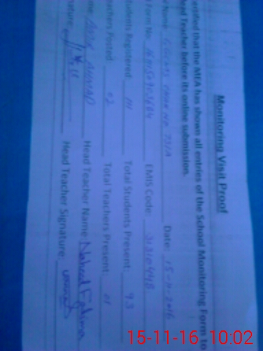| Certified that this School was Inspected by the Undersigned MEA/DMO Today and the Information Stated Above is as Per Record. | |||||