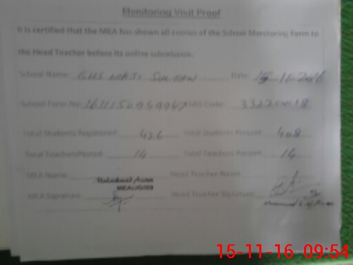 | Certified that this School was Inspected by the Undersigned MEA/DMO Today and the Information Stated Above is as Per Record. | |||||