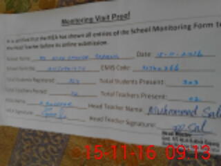 | Attendance Register | Head Teacher | MEA with School | Visit Proof |