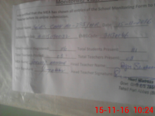 | EMIS Code: 31130046 | Name of School: GGES CHAK 285/HR | |||