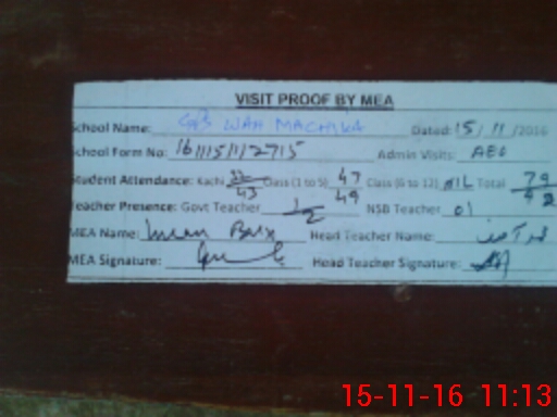 | EMIS Code: 32430089 | Name of School: GPS WAH MACHIKA | |||