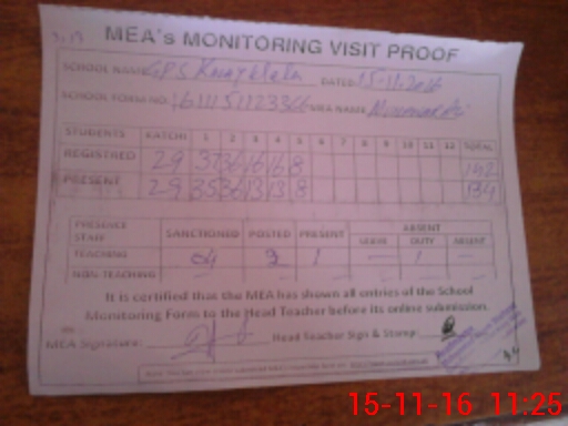 | Attendance Register | Head Teacher | MEA with School | Visit Proof |