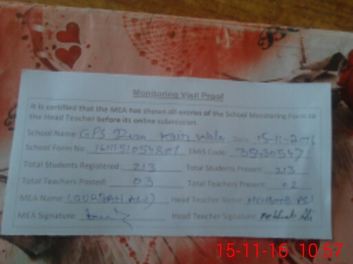 | EMIS Code: 35430547 | Name of School: GPS DERA KARE WALA | |||