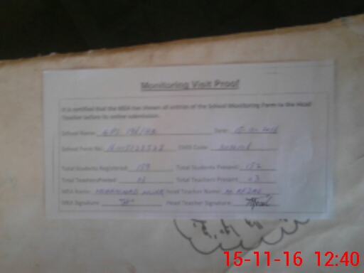 | Attendance Register | Head Teacher | MEA with School | Visit Proof |