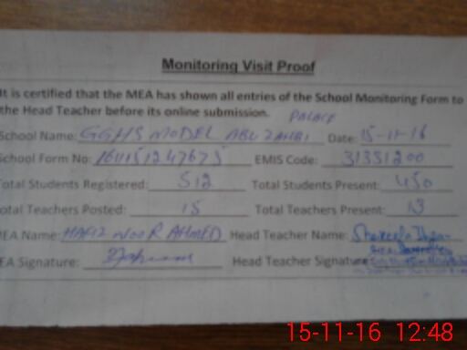 | Certified that this School was Inspected by the Undersigned MEA/DMO Today and the Information Stated Above is as Per Record. | |||||