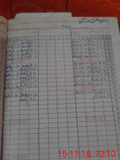 | CNIC | Full Name | Designation | R/C | Absence During Last Calender Month |