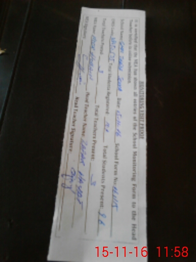 | Attendance Register | Head Teacher | MEA with School | Visit Proof |