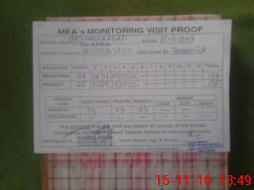 | Certified that this School was Inspected by the Undersigned MEA/DMO Today and the Information Stated Above is as Per Record. | |||||