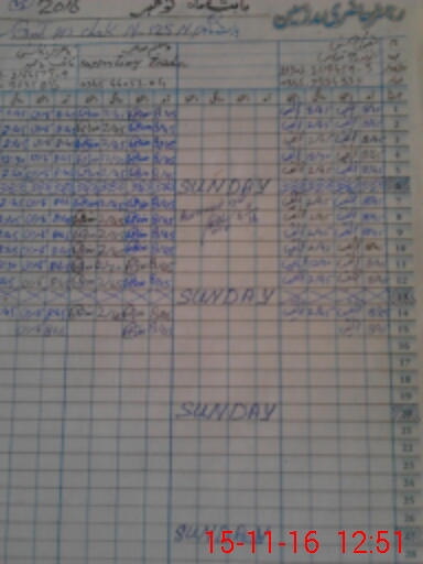 | CNIC | Full Name | Designation | R/C | Absence During Last Calender Month |