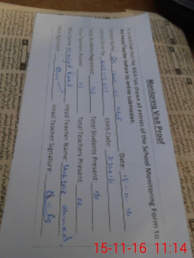 | Certified that this School was Inspected by the Undersigned MEA/DMO Today and the Information Stated Above is as Per Record. | |||||