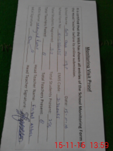 | Certified that this School was Inspected by the Undersigned MEA/DMO Today and the Information Stated Above is as Per Record. | |||||