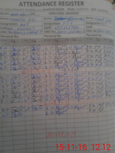 | District: SARGODHA | Tehsil: SHAHPUR | Markaz: SHAHPUR - FEMALE | Level: Primary | |