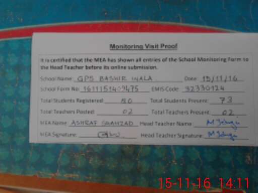 | EMIS Code: 32330124 | Name of School: GPS BASHIR WALA | |||