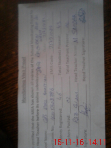 | Attendance Register | Head Teacher | MEA with School | Visit Proof |