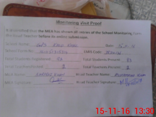 | EMIS Code: 38310136 | Name of School: GPS KALU KHEL | |||