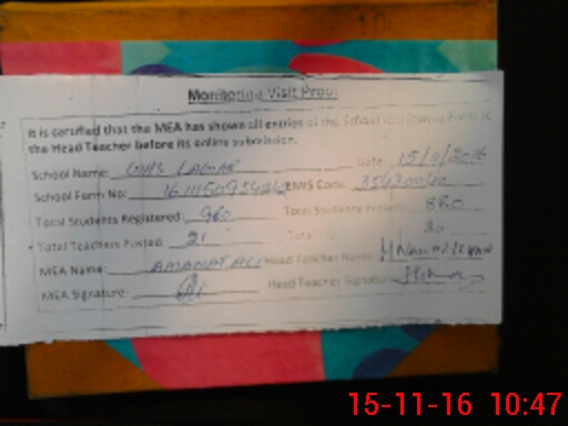 | Certified that this School was Inspected by the Undersigned MEA/DMO Today and the Information Stated Above is as Per Record. | |||||