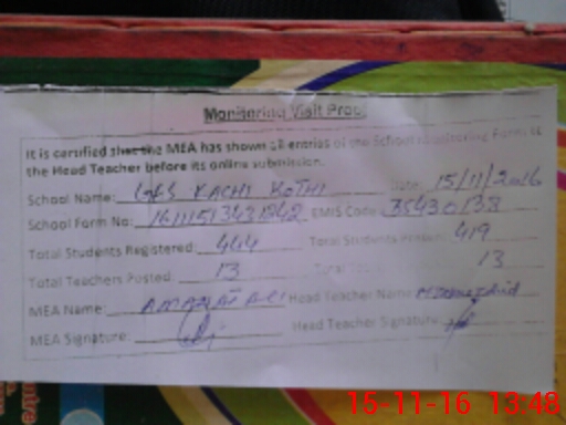 | Certified that this School was Inspected by the Undersigned MEA/DMO Today and the Information Stated Above is as Per Record. | |||||