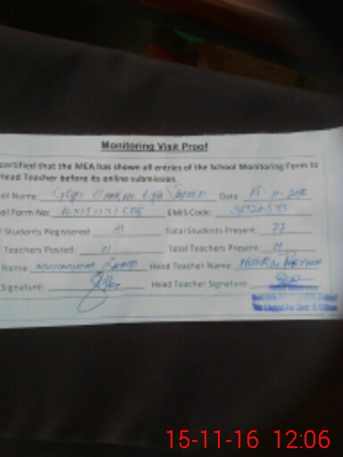 | Attendance Register | Head Teacher | MEA with School | Visit Proof |