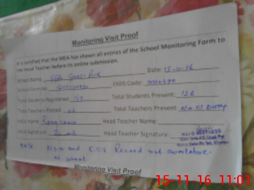| EMIS Code: 31310470 | Name of School: GGPS GHAZI PUR | |||