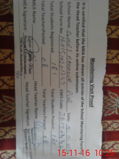 | Certified that this School was Inspected by the Undersigned MEA/DMO Today and the Information Stated Above is as Per Record. | |||||