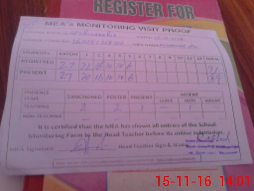 | Attendance Register | Head Teacher | MEA with School | Visit Proof |