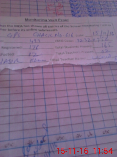 | Attendance Register | Head Teacher | MEA with School | Visit Proof |
