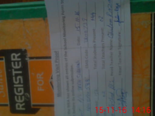 | Attendance Register | Head Teacher | MEA with School | Visit Proof |