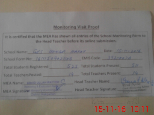 | Certified that this School was Inspected by the Undersigned MEA/DMO Today and the Information Stated Above is as Per Record. | |||||
