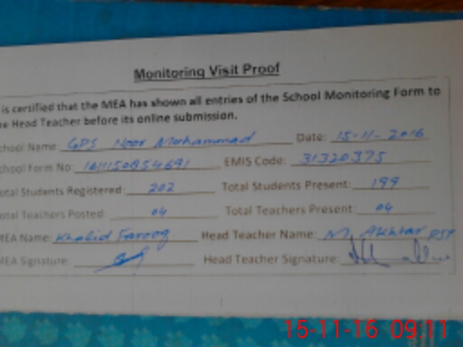 | EMIS Code: 31320375 | Name of School: GPS NOOR MUHAMMAD | |||