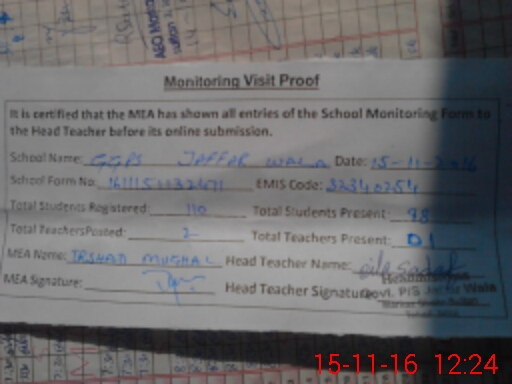 | EMIS Code: 32340254 | Name of School: GGPS JAFFER WALA | |||