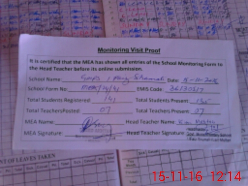 | Attendance Register | Head Teacher | MEA with School | Visit Proof |