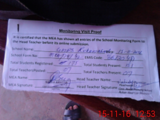 | Attendance Register | Head Teacher | MEA with School | Visit Proof |