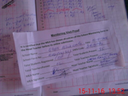 | Attendance Register | Head Teacher | MEA with School | Visit Proof |