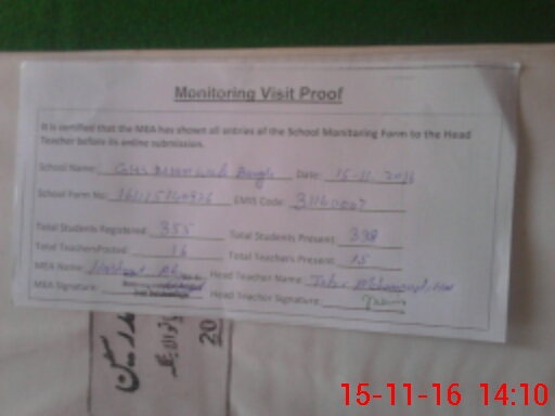 | EMIS Code: 31140007 | Name of School: GHS MIAN WALA BANGLA | |||