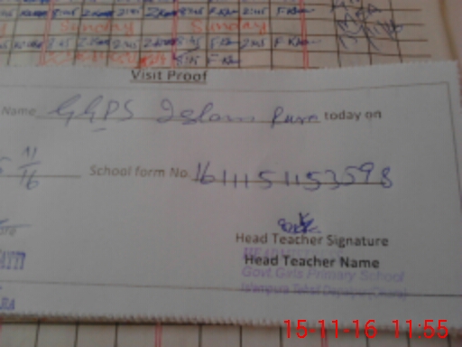 | School Visited by School Health & Nutrition Supervisor (No. of Visits) | 1 | Name1: | Saleem Haider | Name2: | |