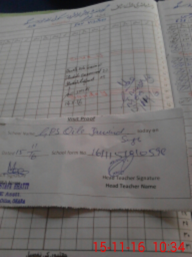 | School Visited by School Health & Nutrition Supervisor (No. of Visits) | 1 | Name1: | Saleem Haider | Name2: | |