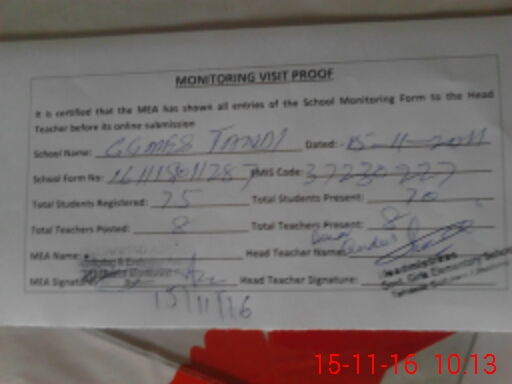 | Certified that this School was Inspected by the Undersigned MEA/DMO Today and the Information Stated Above is as Per Record. | |||||