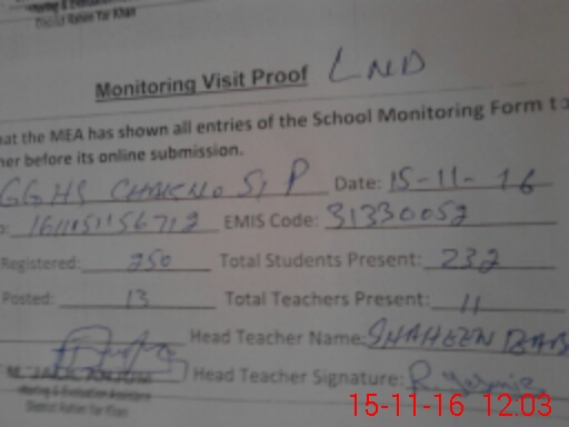 | EMIS Code: 31330052 | Name of School: GGHS CHAK NO. 51/P R.Y.KHAN | |||