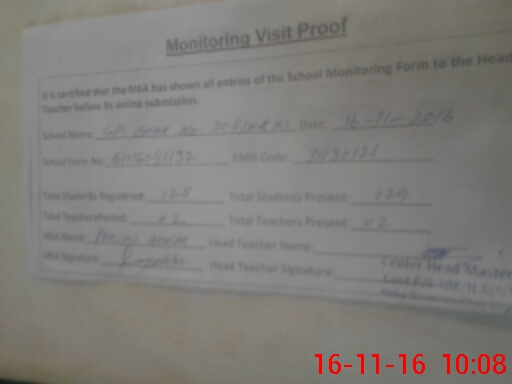 | EMIS Code: 31130121 | Name of School: GPS CHAK 308/HR NORTH | |||