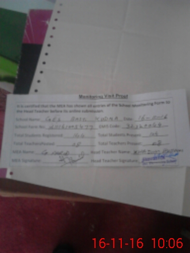 | Attendance Register | Head Teacher | MEA with School | Visit Proof |