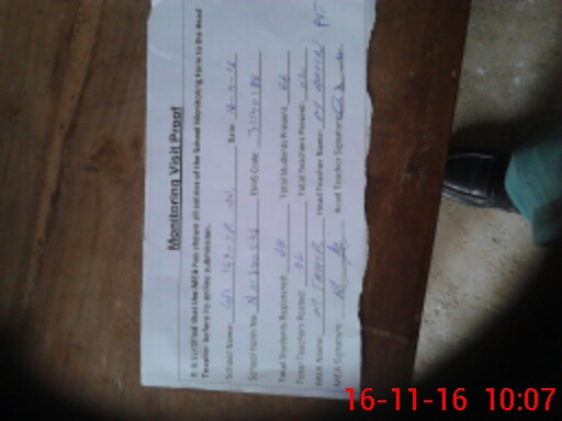 | Attendance Register | Head Teacher | MEA with School | Visit Proof |