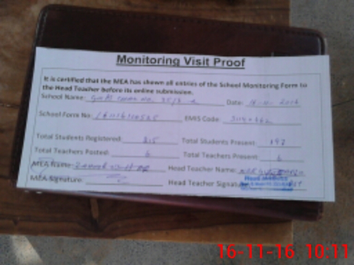 | Attendance Register | Head Teacher | MEA with School | Visit Proof |